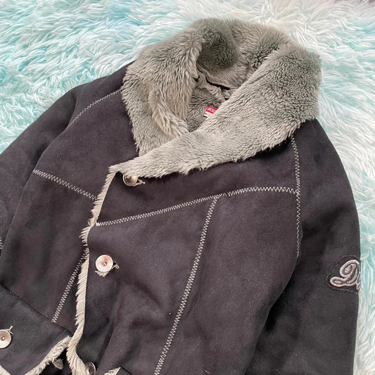 Vintage Black Diesel Faux Suede Fur Jacket - Large
