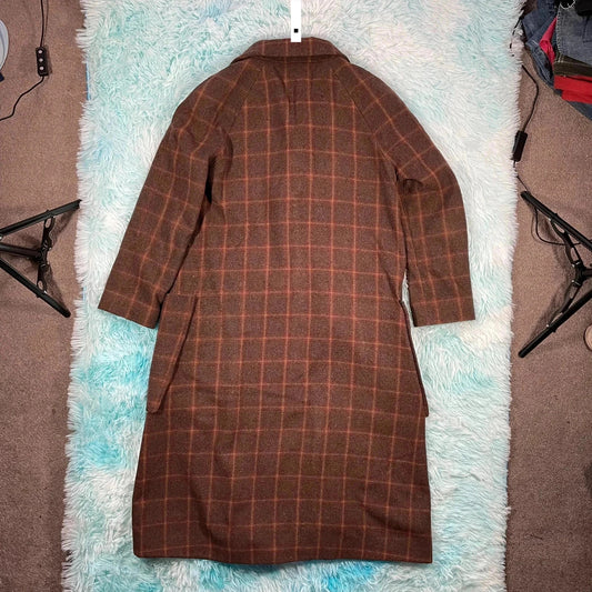 Brown Chequered Paris Atelier Wool Long Coat - Size 6