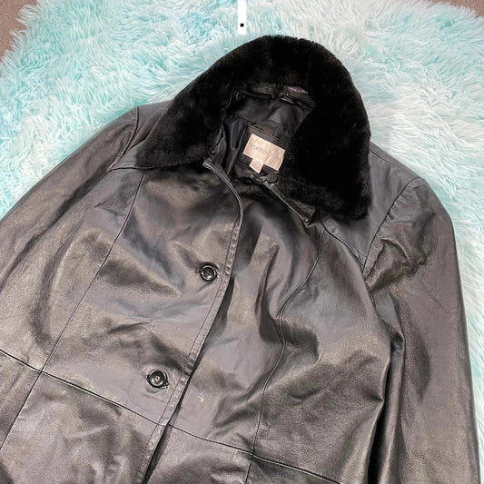 Vintage 90s Black Leather Long Coat Jacket - Women’s XXL