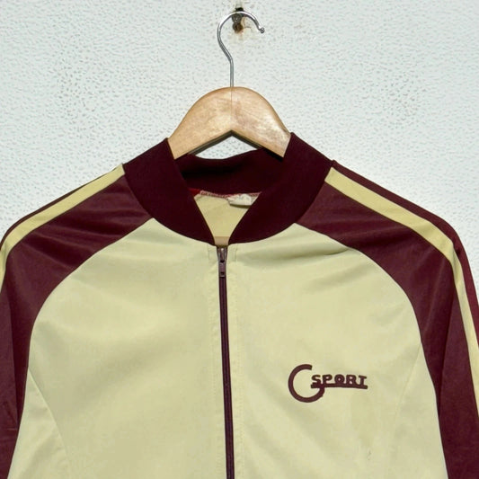 Vintage 70s Cream & Burgundy Track Jacket CSport - Small
