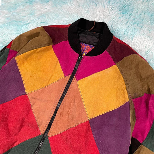 Vintage 80s Multicoloured Leather Bomber Jacket - Medium