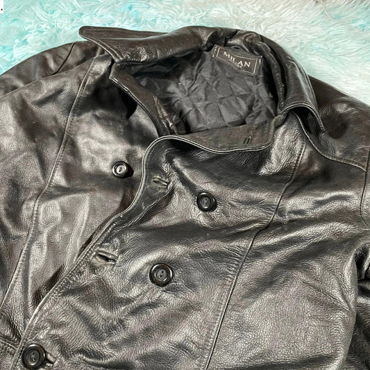 Vintage Black Milan Leather Jacket Button Up - Large