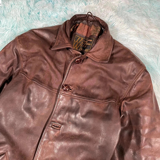 Vintage 90s Brown Leather Jacket Button Up - XS