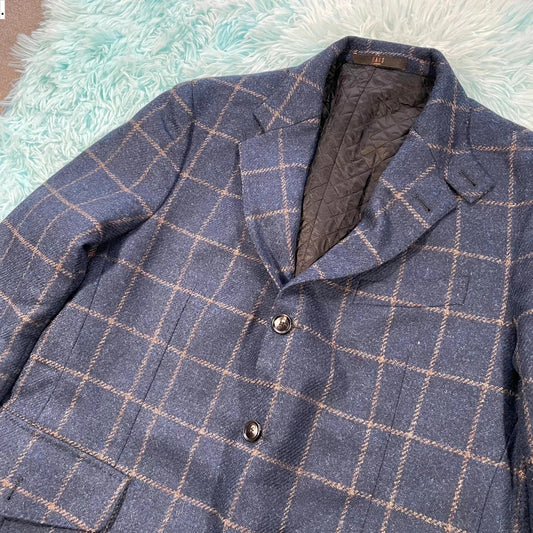 Vintage 90s Blue Chequered Blazer Jacket Oaks - XL