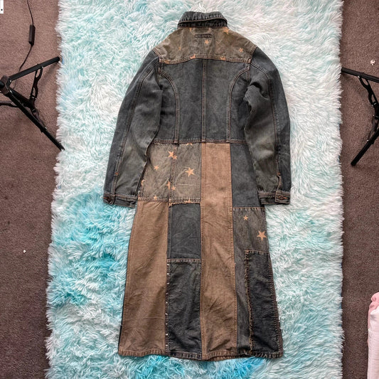 Vintage 90s Patterned Denim Trench Coat - Size 8