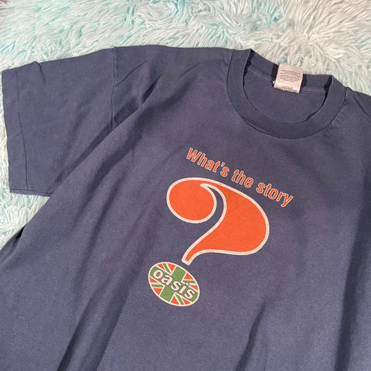 Vintage 1995 Oasis Band T Shirt What the Story Print - XL