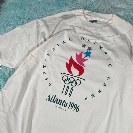 Vintage 90s White Atlanta 1996 Olympics Graphic T Shirt - XL
