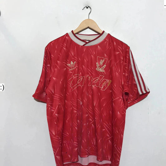 Vintage 1989-1991 Liverpool Shirt Home Kit Adidas Candy - Large