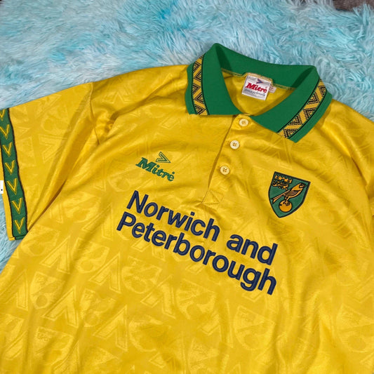 Vintage 1994-96 Norwich Shirt Mitre Football Kit - Large