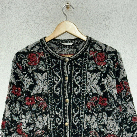 Vintage 80s Black Floral Patterned Knitted Cardigan