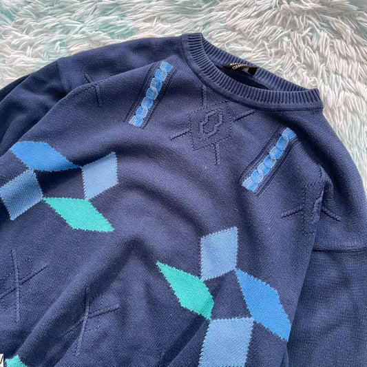 Vintage 90s Navy Funky Knitted Jumper - Large