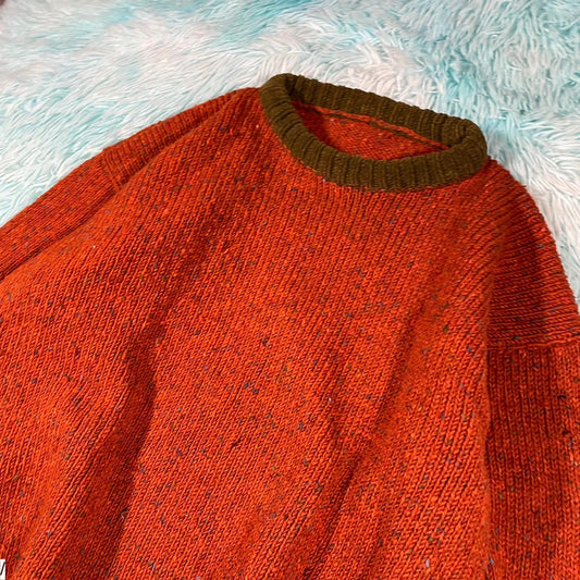 Vintage 90s Orange Irish Wool Knitted Jumper - Large