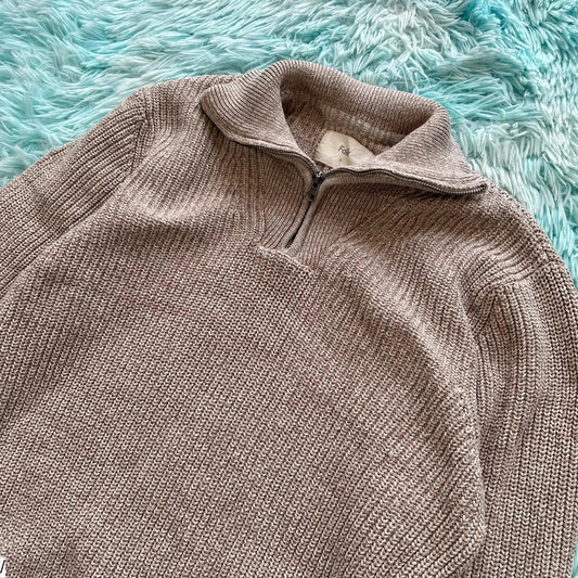 Beige Folk Knitted 1/4 Zip Jumper - XL