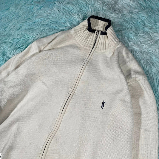 Vintage White Yves Saint Laurent Knitted Jumper Full Zip - Medium