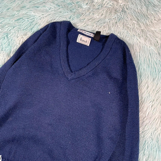 Vintage 80s Navy Harris’s V Neck Knitted Jumper - S