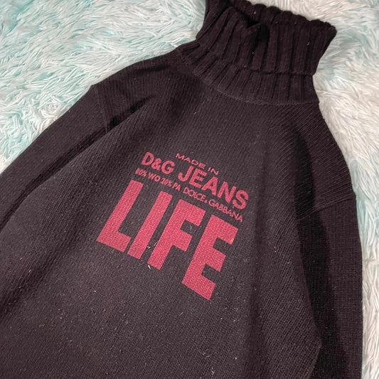 Vintage 90s Black Dolce & Gabbana Turtleneck Knitted Jumper - Small