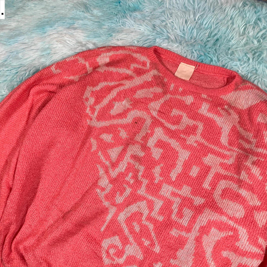 Vintage 80s Pink Patterned Knitted Jumper - Size 12