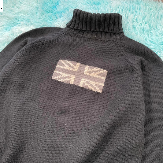 Vintage 90s Black Burton GB Flag Turtle Neck Knitted Jumper - Medium