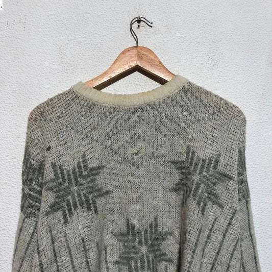 Vintage 90s Grey Knitted Jumper Winter Patterned - large