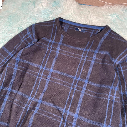 Navy & Cream Gant Heavyweight Knitted Jumper - Medium