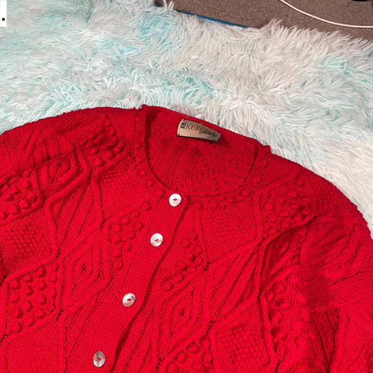 Vintage Red Kuruka Knitted Cardigan - One Size