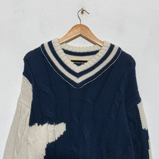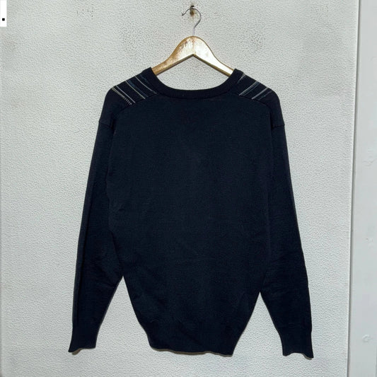 Vintage Navy Grunge Patterned Gabicci Knitted Jumper - Medium