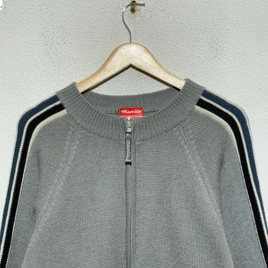 Vintage 00s Grey Mambo Knitted Jumper Full Zip - Large