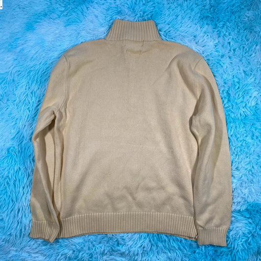 Vintage Yellow Polo Ralph Lauren 1/4 Zip Knitted Jumper - Large