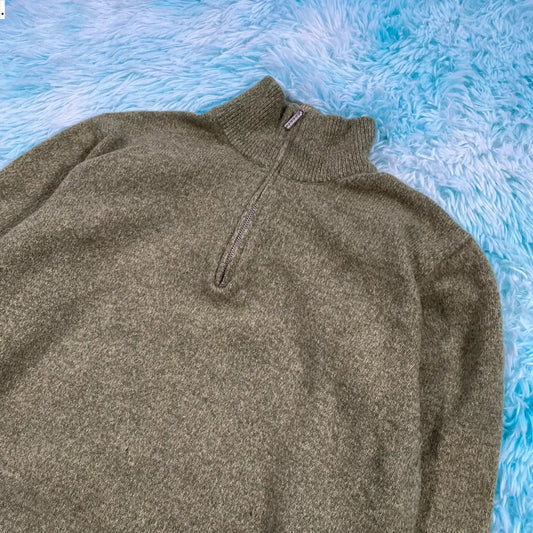 Olive Green Boggi 1/4 Zip Knitted Jumper - Small