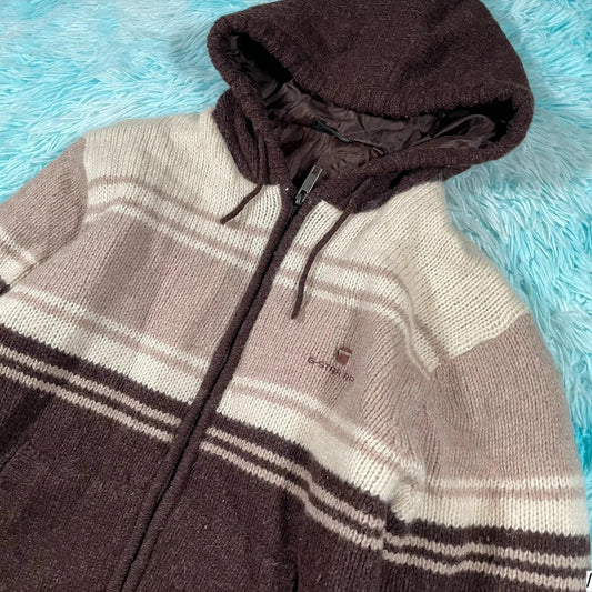 Vintage Brown & Cream G-Star Knitted Jacket - Medium
