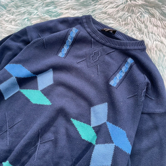 Vintage 80s Navy Aztec patterned Knitted Jumper - Large