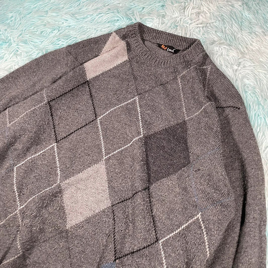 Vintage 90s Grey Grunge Patterned Knitted Jumper - XL
