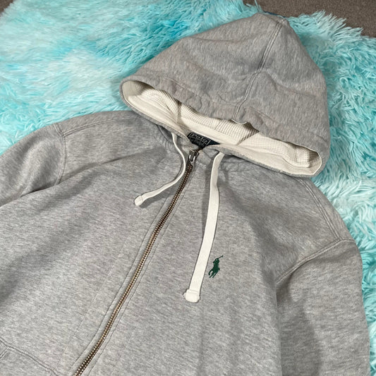 Vintage Grey Polo Ralph Lauren Full Zip Hoodie - Medium