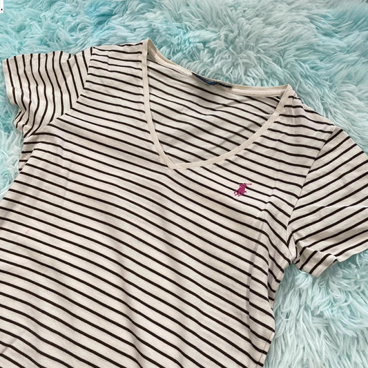 Cream & Brown Striped Ralph Lauren T Shirt - Large