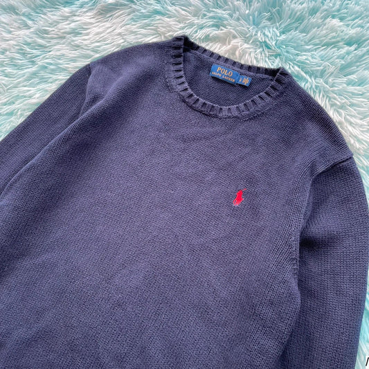 Vintage Navy Polo Ralph Lauren Knitted Jumper - Large