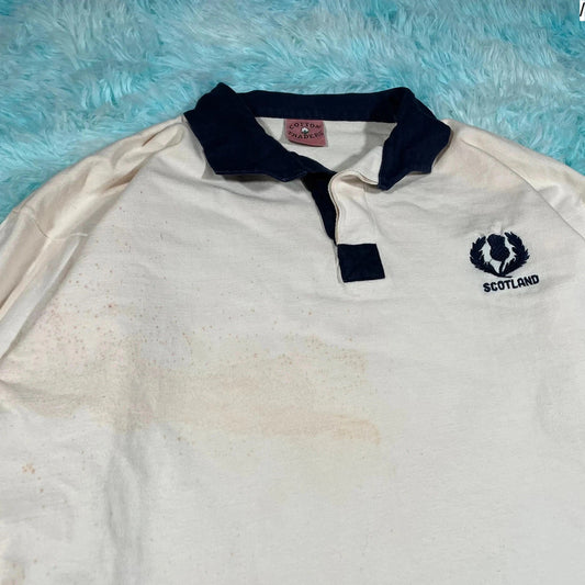 Vintage 80s White Scotland Rugby Shirt Cotton Traders - Large