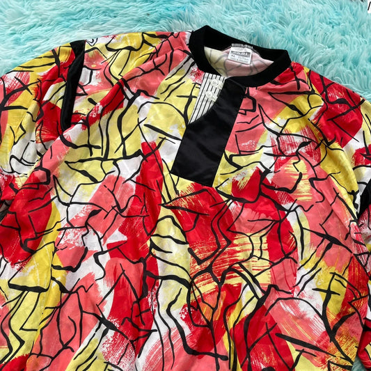 Vintage 90s Orange Funky Patterned Football Shirt - XL