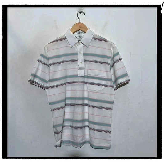 Vintage 80s White & Blue Striped Christian Dior Polo Shirt - Medium