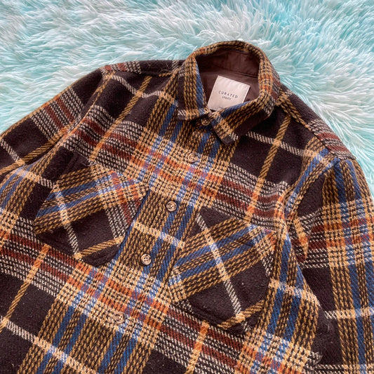 Brown Chequered Curated Utility Flannel Shirt Shacket - Large