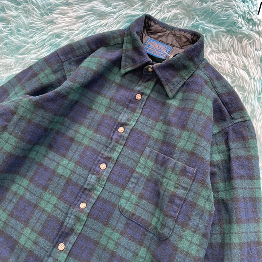 Vintage Green & Navy Pendleton Flannel Shirt - Large