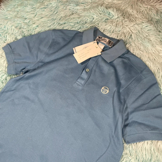 Deadstock Vintage 90s Blue Sergio Tacchini Polo Shirt - Small