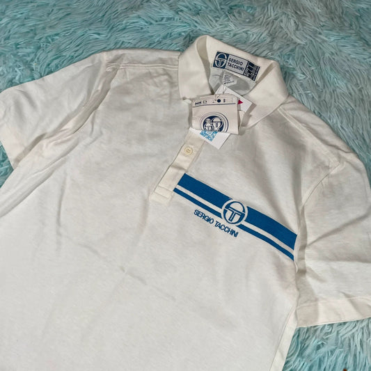 Vintage 80s White Sergio Tacchini Polo Shirt - Small