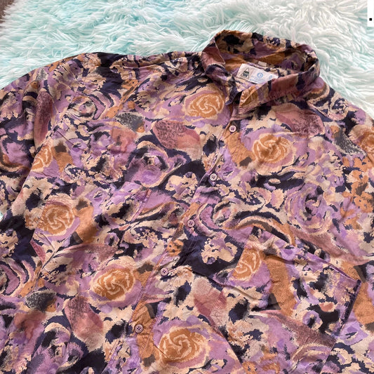 Vintage 90s Purple Funky Patterned Silk Shirt - XXL