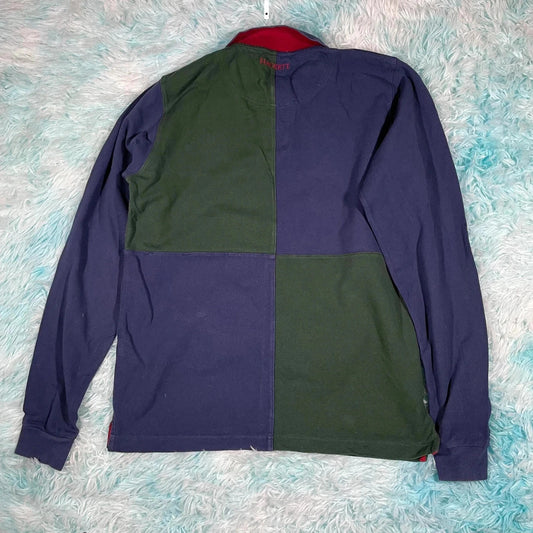 Navy & Green Hackett Polo Shirt Long Sleeve - Small