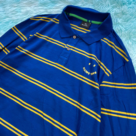 Blue & Yellow Striped Paul Smith Polo Shirt Long Sleeve - Medium