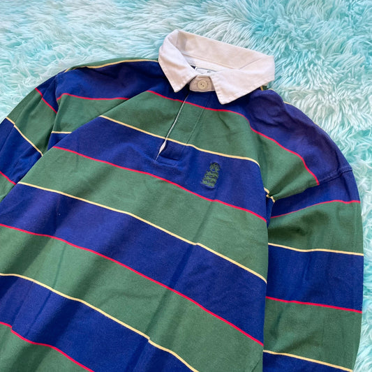 Green & Blue Striped Kent & Curwen Rugby Shirt - Large