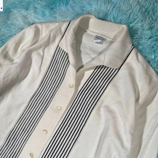 Vintage 1970s Brown Striped Polo Top Shirt - Medium