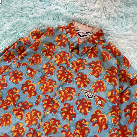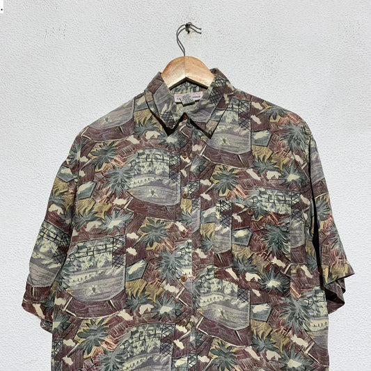 Vintage 90s Maroon Silk Patterned Shirt - Large