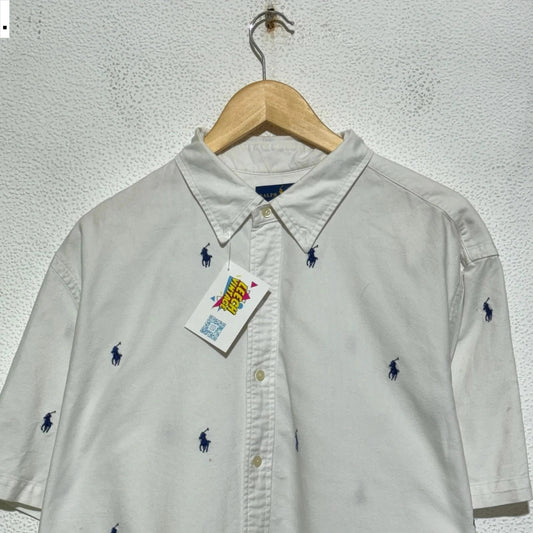 White Polo Ralph Lauren Shirt All Over Pony - Large