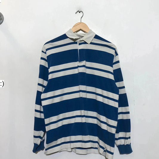 Vintage 90s Blue & White Striped St Michael Rugby Polo Shirt - Medium